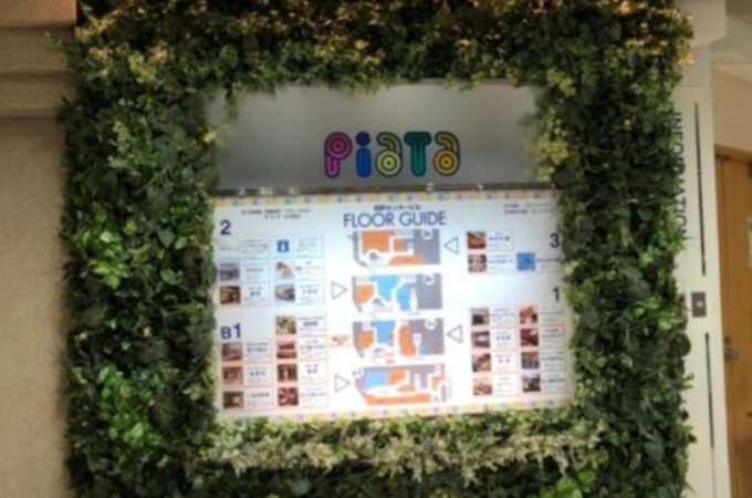 店舗名 田町 PIATA 商業施設施設案内をLED映像にし、それを囲む形で壁面緑化 (フェイク) にしました。 1.造花による壁...